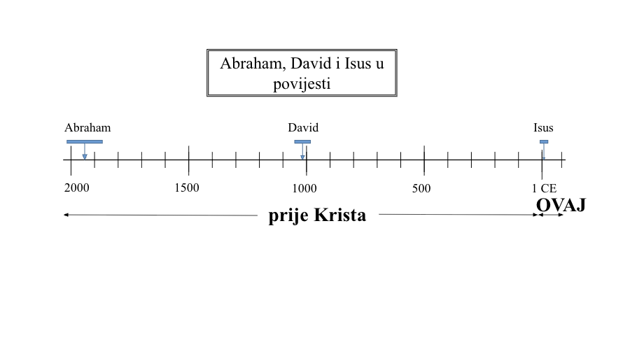 Isus, David i Abraham u povijesnoj vremenskoj liniji. Isus je rođen 4. godine prije Krista, budući da Evanđelja bilježe da je Herod živio u vrijeme njegovog rođenja.
